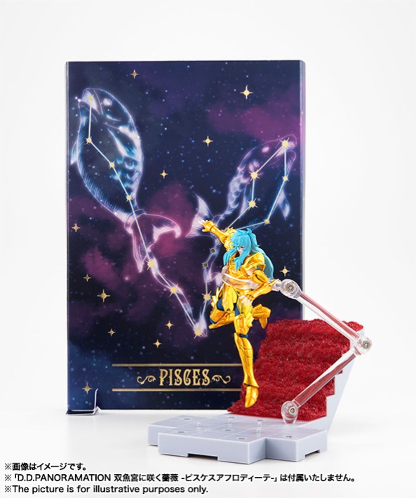 La galería se completa con una foto de la lámina de la constelación de Piscis acompañada de la figura D. D. Panoramation de Afrodita en una postura de acción.