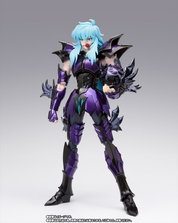 En cuanto a los colores de los que está pintada la armadura de la figura, estos son los mismos que los de todas las figuras Myth Cloth EX de los Espectros de Hades: negro y violeta.