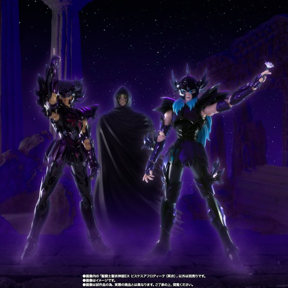 Y es que, efectivamente, hay «algo» que demuestra que esto es así. Ello es el hecho de que, en la galería de Afrodita de Piscis Espectro EX, se ha incluido una foto de esta figura acompañada de la EX de Deathmask de Cáncer Espectro… Y de la incluida en el set que representa a Shion ataviado con su túnica con capucha.