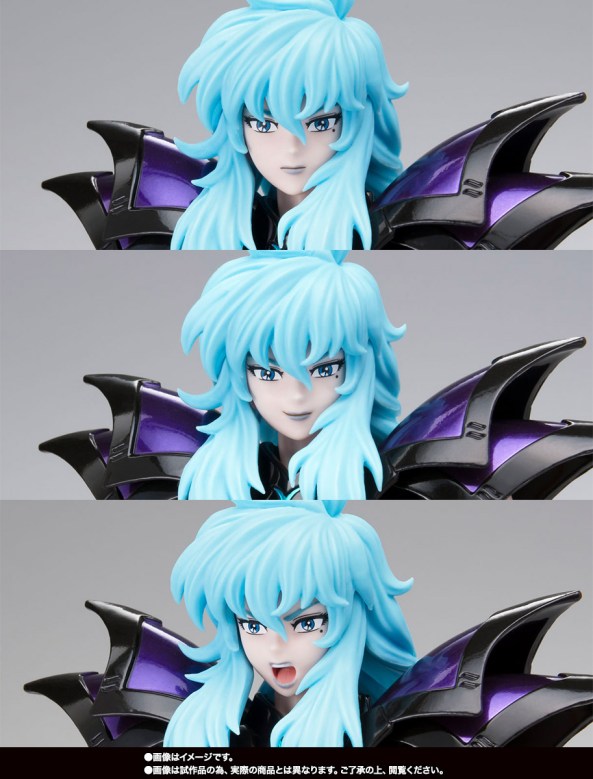 Entre eso y que en las fotos las figuras lucían unos rostros con los ojos ensombrecidos, no se sabía de qué personajes eran estas figuras. Y entre eso y que eran figuras de tres de los 12 personajes de la serie que son resucitados por Hades ataviados con las túnicas con capucha antes dichas, tampoco se sabía si eran figuras Myth Cloth clásicas o EX.