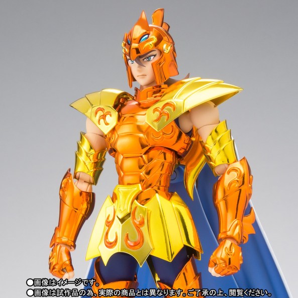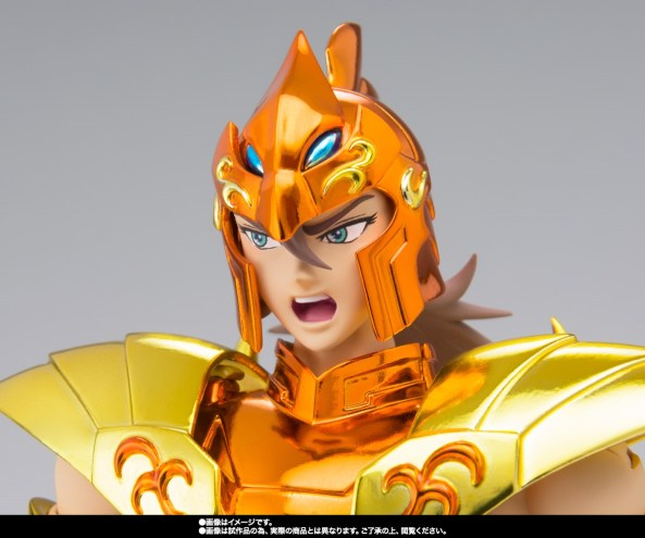 En el caso de esta figura, esto se traduce en que nos encontramos ante una figura Myth Cloth EX con la armadura pintada de un color naranja brillante genérico en todas sus piezas con solamente las hombreras, los guardabrazos y el faldón pintados de dorado amarillo.