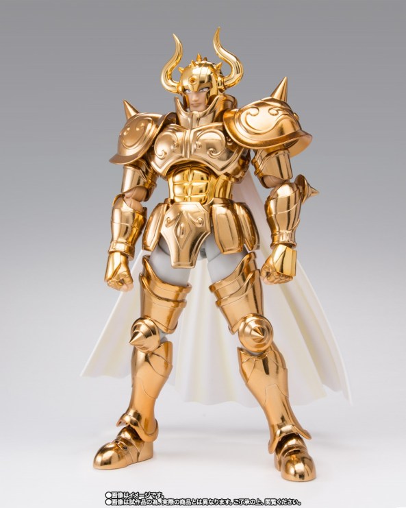 El caso es que la única diferencia que hay entre la Armadura de Oro de Tauro del manga y la del anime es que esta última tiene la franja vertical central del casco, aquella en la que tiene la hilera vertical de púas, de color azul oscuro, mientras que en el manga no es así, el casco es totalmente de color dorado.